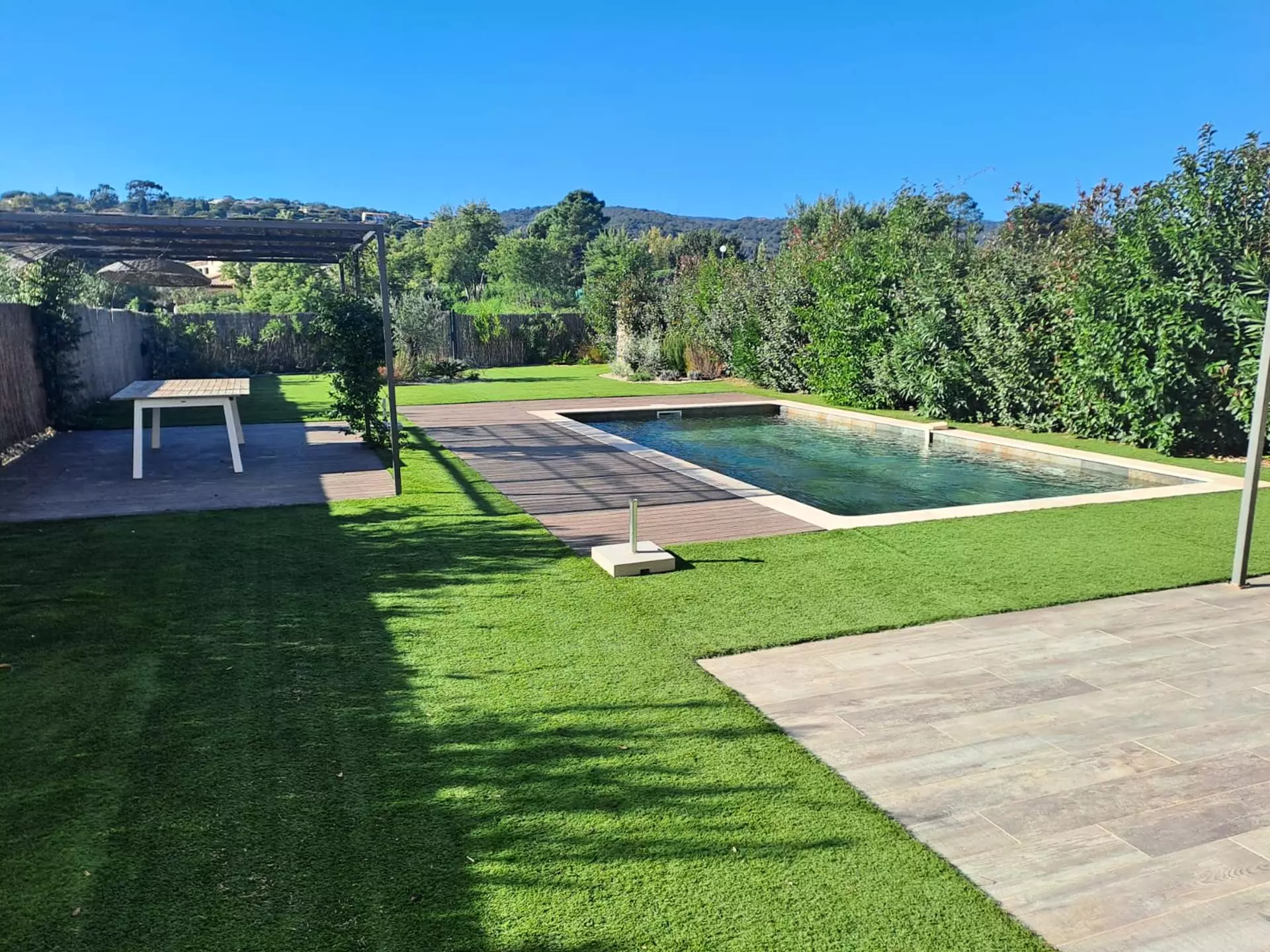 Ein moderner und gut ausgestatteter Raum: Auf einem 575 m² großen Grundstück bietet das Haus einen großen privaten Swimmingpool von 4 x 8 m (Tiefe von 1 m bis 1,6 m), umgeben von einem schönen Entspannungsbereich mit Liegestühlen und geräumigen Gartenmöbeln.